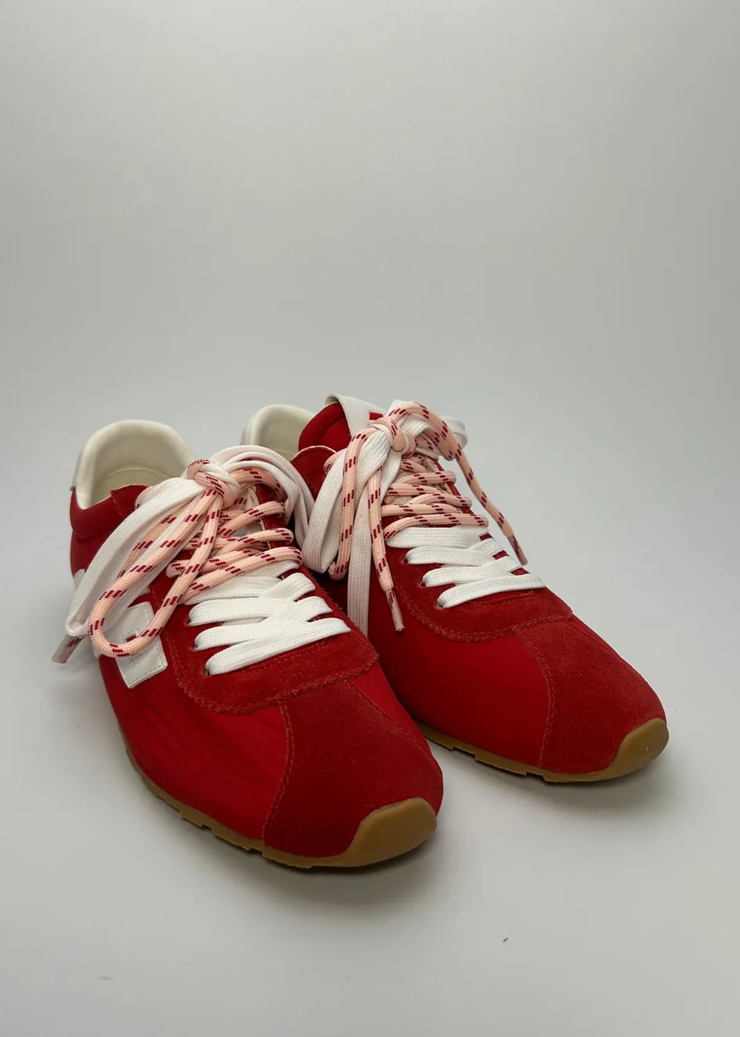Le sneakers 3P si reinventano per la Primavera/Estate con un tocco audace e raffinato. Il vibrante "nylon red" è una dichiarazione di stile che cattura lo sguardo, infondendo energia e carattere in ogni passo. Per la donna che non teme di osare, sono l'emblema del lusso dinamico.Comfort e Carattere Distintivo