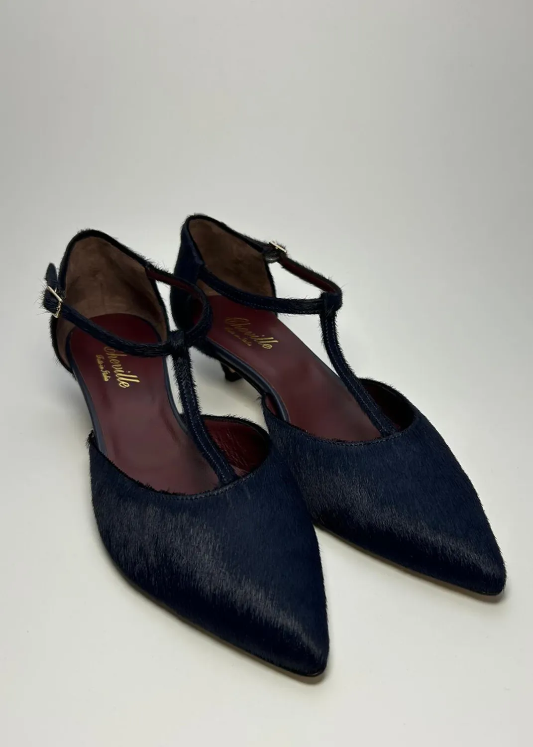 Il Tanghero Isa Cavallino Blu di Cheville è una scarpa dal carattere forte che unisce l'ispirazione alla danza con un materiale di lusso e un colore inaspettato. Il modello Tanghero (ispirato al tango) suggerisce una struttura che garantisce tenuta e un tacco stabile. La scelta del Cavallino Blu (probabilmente zaffiro o blu notte) aggiunge una profondità cromatica e una texture ricca e sensuale. Cheville crea una calzatura che è un mix di glamour e funzionalità. È l'accessorio perfetto per chi cerca un tacco che sia comodo e di grande impatto visivo, unendo la fluidità della danza con la preziosità del cavallino e l'eleganza misteriosa del blu scuro.