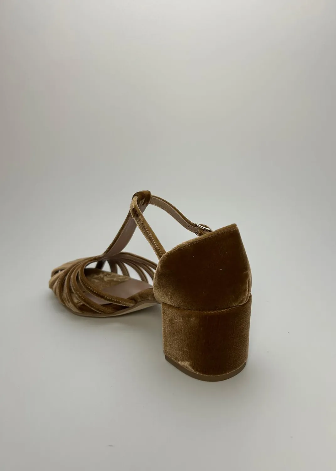 Lasciati sedurre da Tamara, la Tanghero di Cheville che ridefinisce l'eleganza per la Primavera-Estate. Nel più morbido velluto color caramello, questa creazione sussurra lusso tangibile e raffinata seduzione, passo dopo passo.