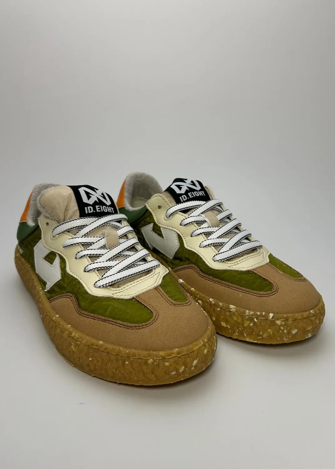 Entra nella Primavera-Estate con le sneakers Id-Eight. La loro silhouette contemporanea e la sofisticata tonalità verde oliva incarnano un lusso dinamico e consapevole, pronto a definire ogni tuo look con un'esclusività inconfondibile.Stile e Sostenibilità Senza Compromessi